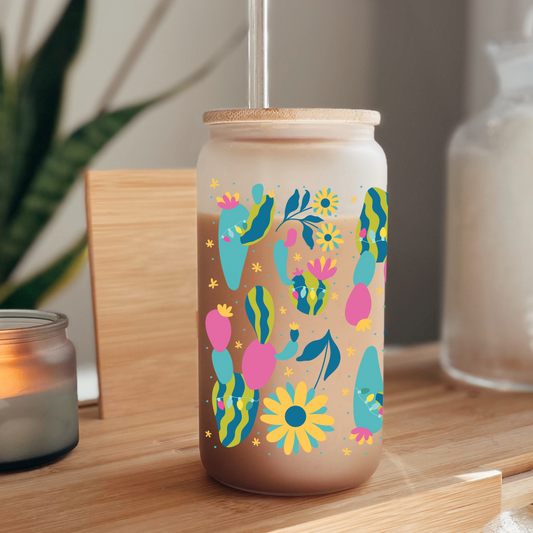 Pink & Gold Glitter Christmas Glass Cup 16oz