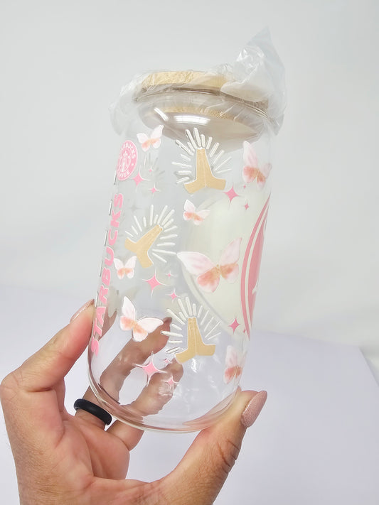 Pink & Gold Glitter Christmas Glass Cup 16oz