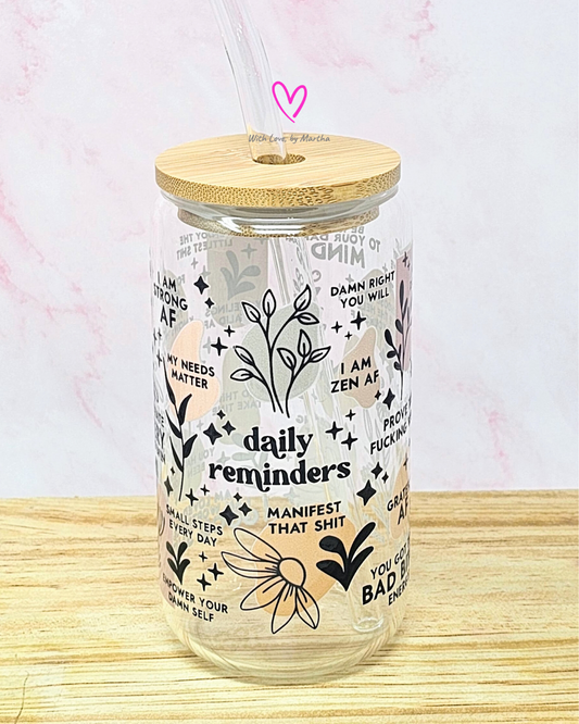 "Daily Reminders" CLEAN version Glass cup 16oz