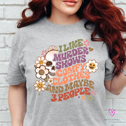 I like murder shows, comfy clothes and maybe 3 people T-shirt