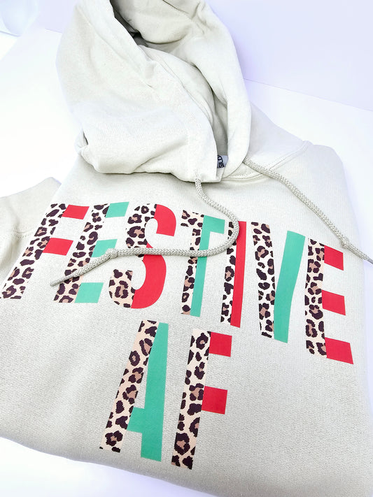 Festive AF (Leopard print) Christmas Hoodie