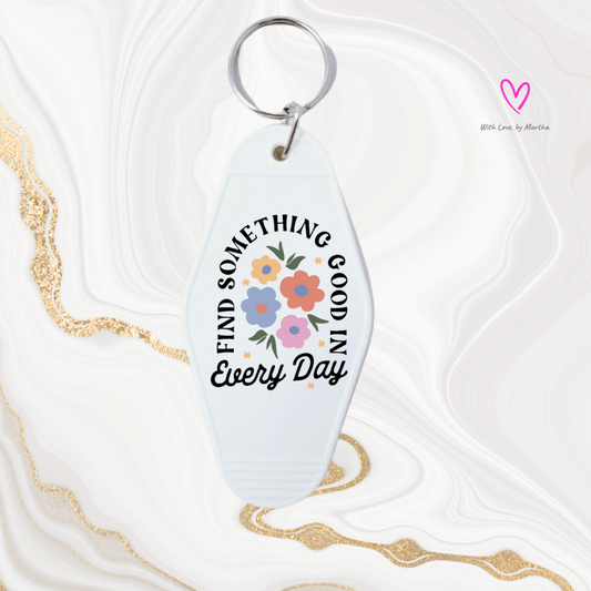 "Find something good in every day" Motel style keychains