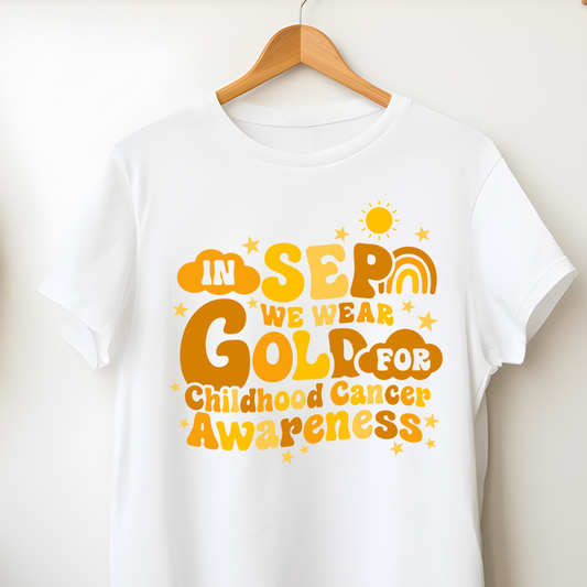 In September we wear gold for childhood cancer awareness T-shirt (Southwest Kids Cancer Foundation)