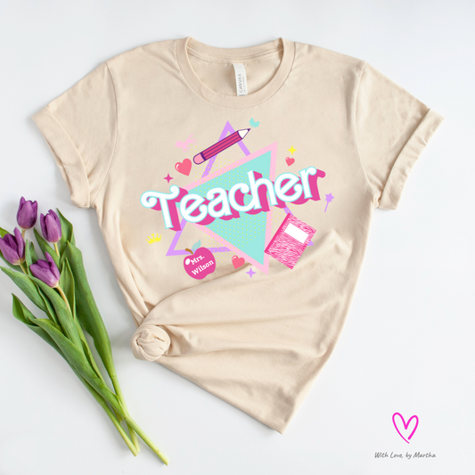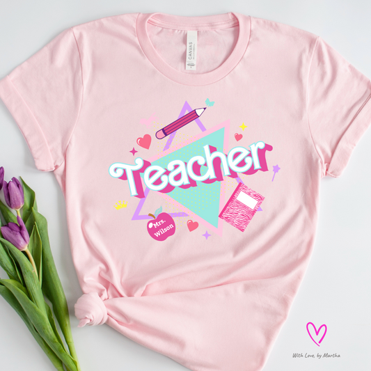 Teacher Retro 90's Barbie Theme Crewneck T-Shirt