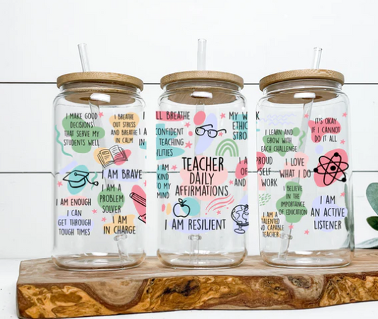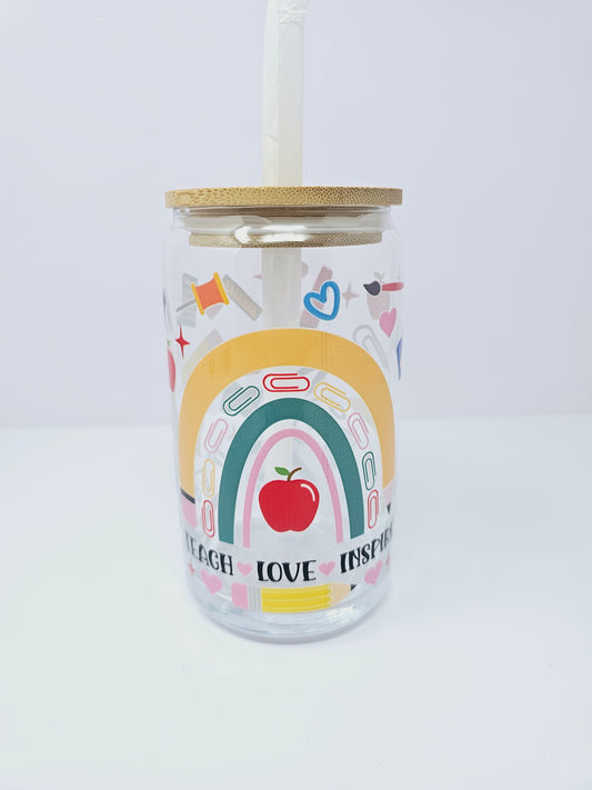 "Teach, Love, Inspire" Techer Glass Cup 16oz