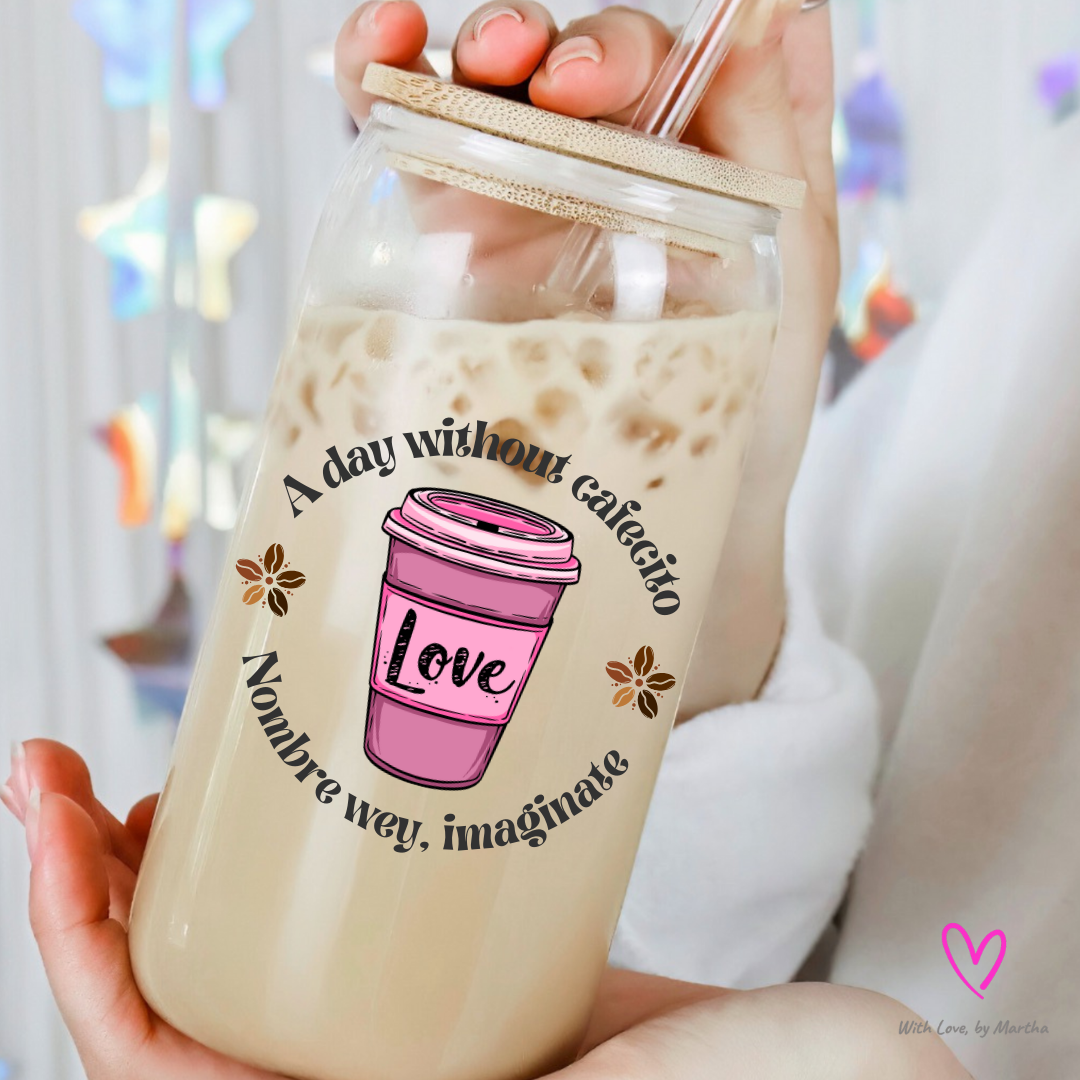 "A day without Cafecito, Nombre wey imaginate" Glass cup 16oz