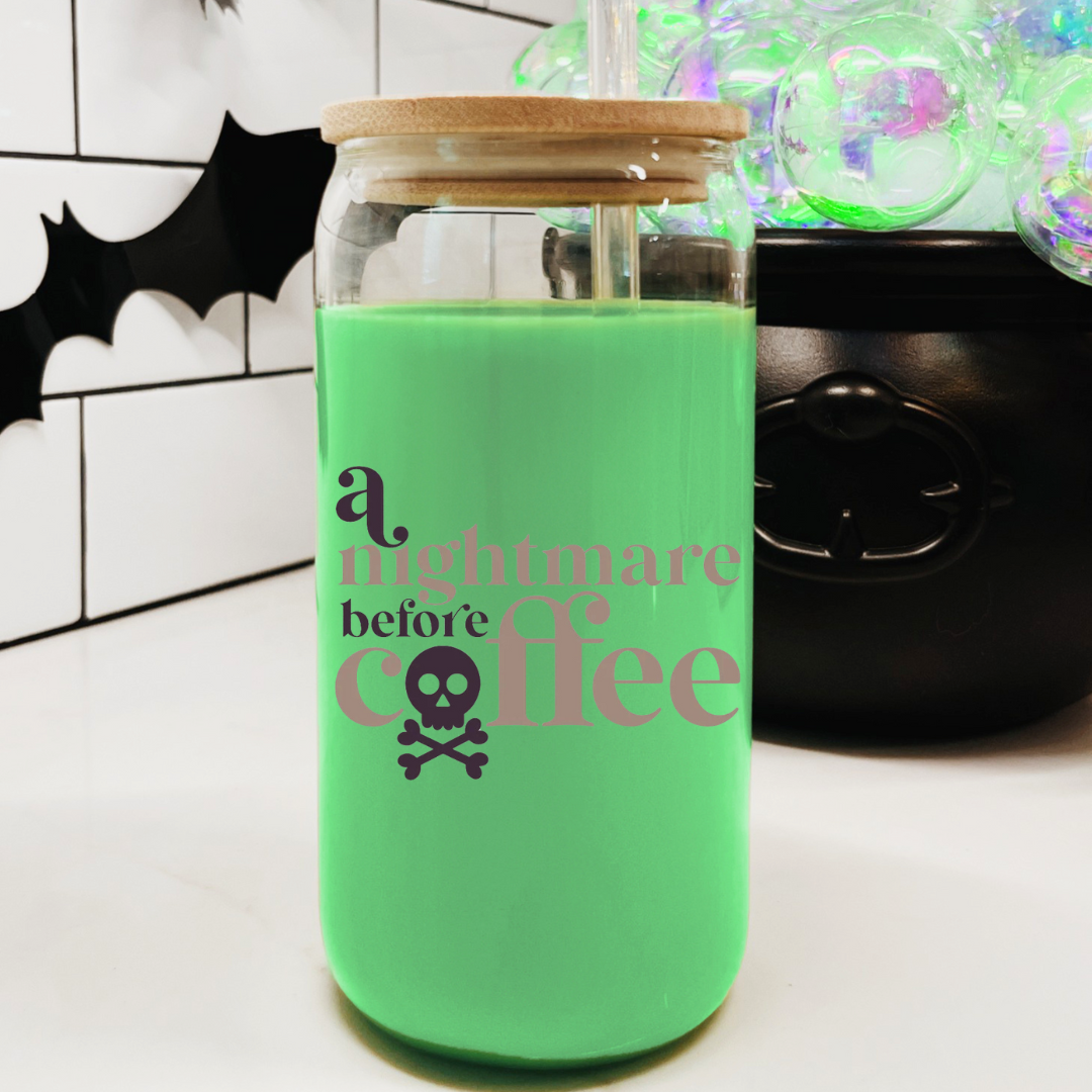 "Nightmare before Coffee" Clear Glass Cup 16oz