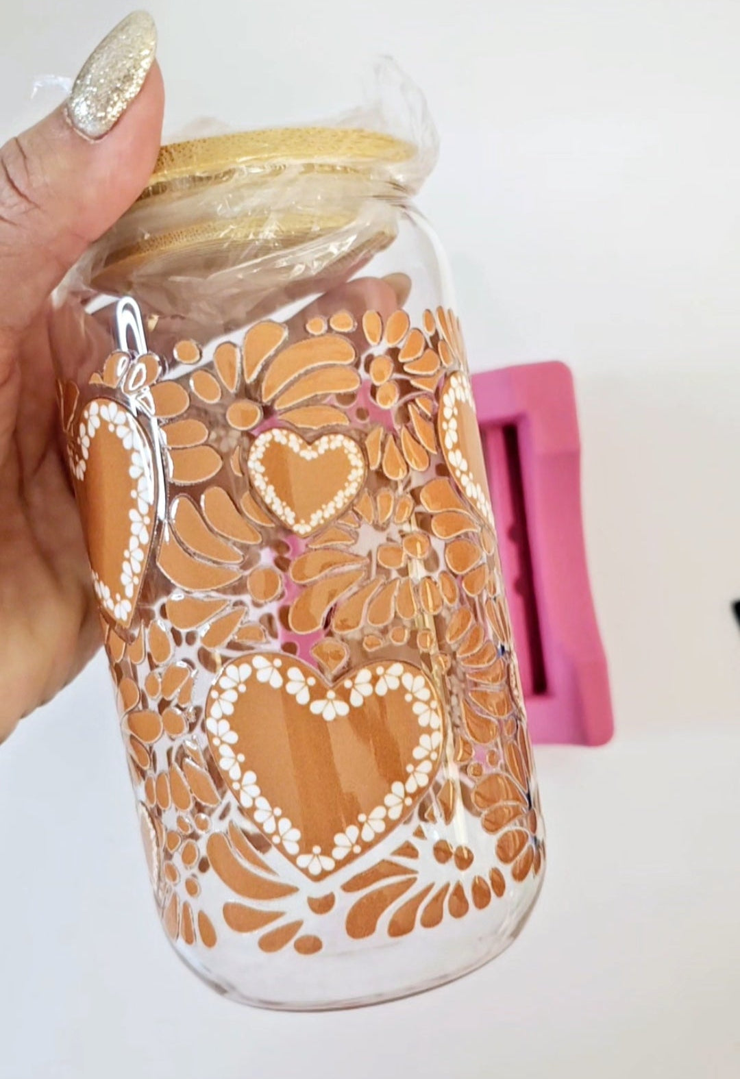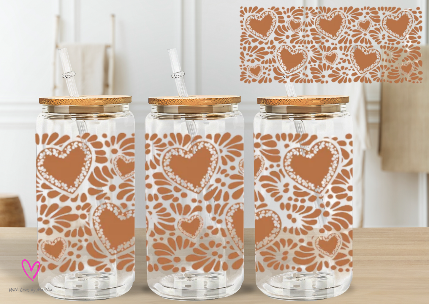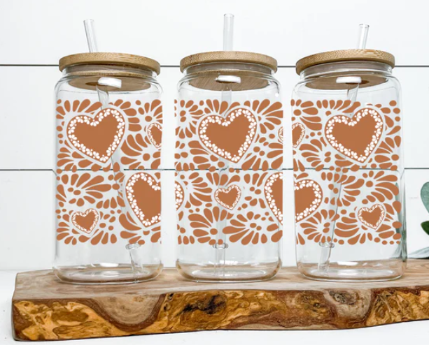Barro Hearts Talavera Glass cup 16oz