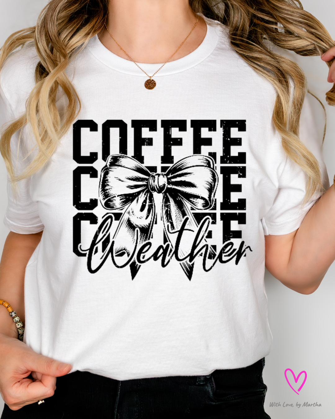 This is a cute t-shirt that makes a great gift for anyone who can't survive without coffee, iced or hot. It's always coffee weather.