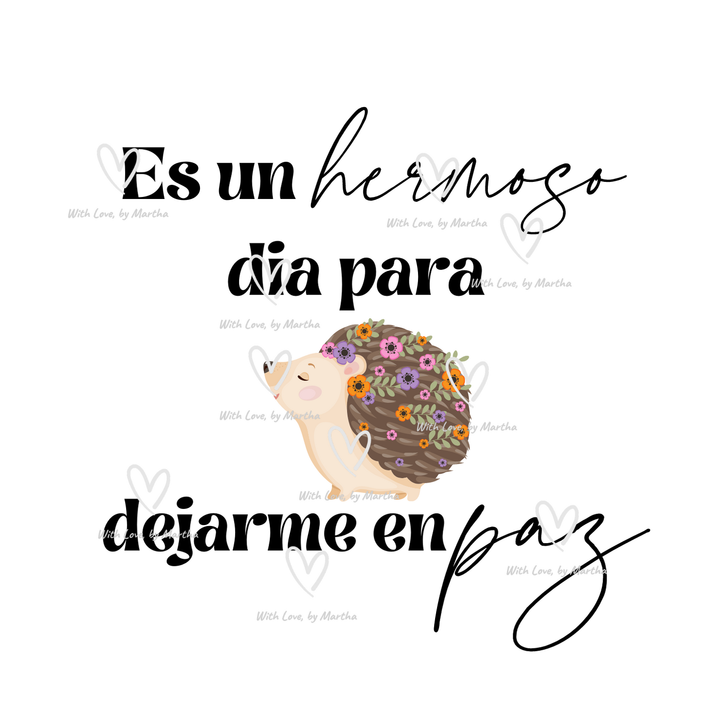 "Es un hermoso dia para dejarme en paz" is a sassy quote in Spanish that means "It's a beautiful day to leave me alone." This is a design perfect to print on DTF, iron-on sublimation for shirts, mugs, totes and more. It can also be added to glass or other surfaces with UVDTF. This Latina inspired design.
