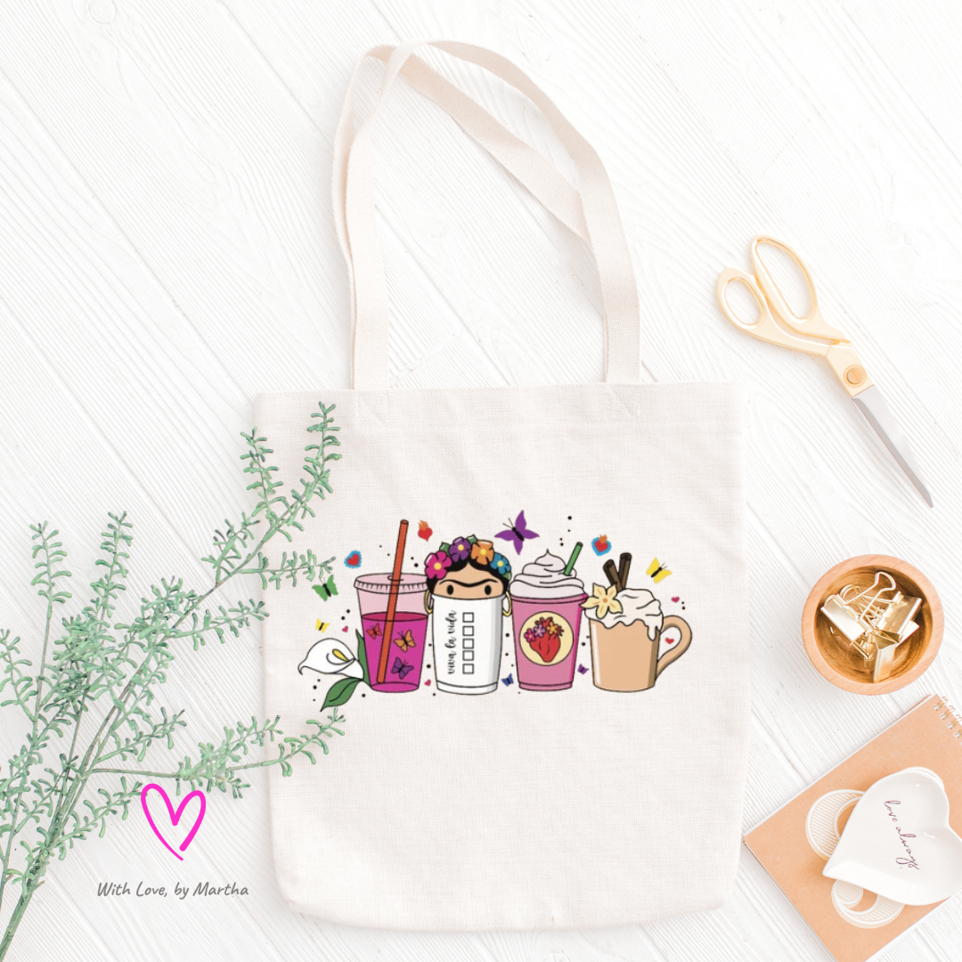 Frida Cups These are super cute cotton totes measuring 16x15."