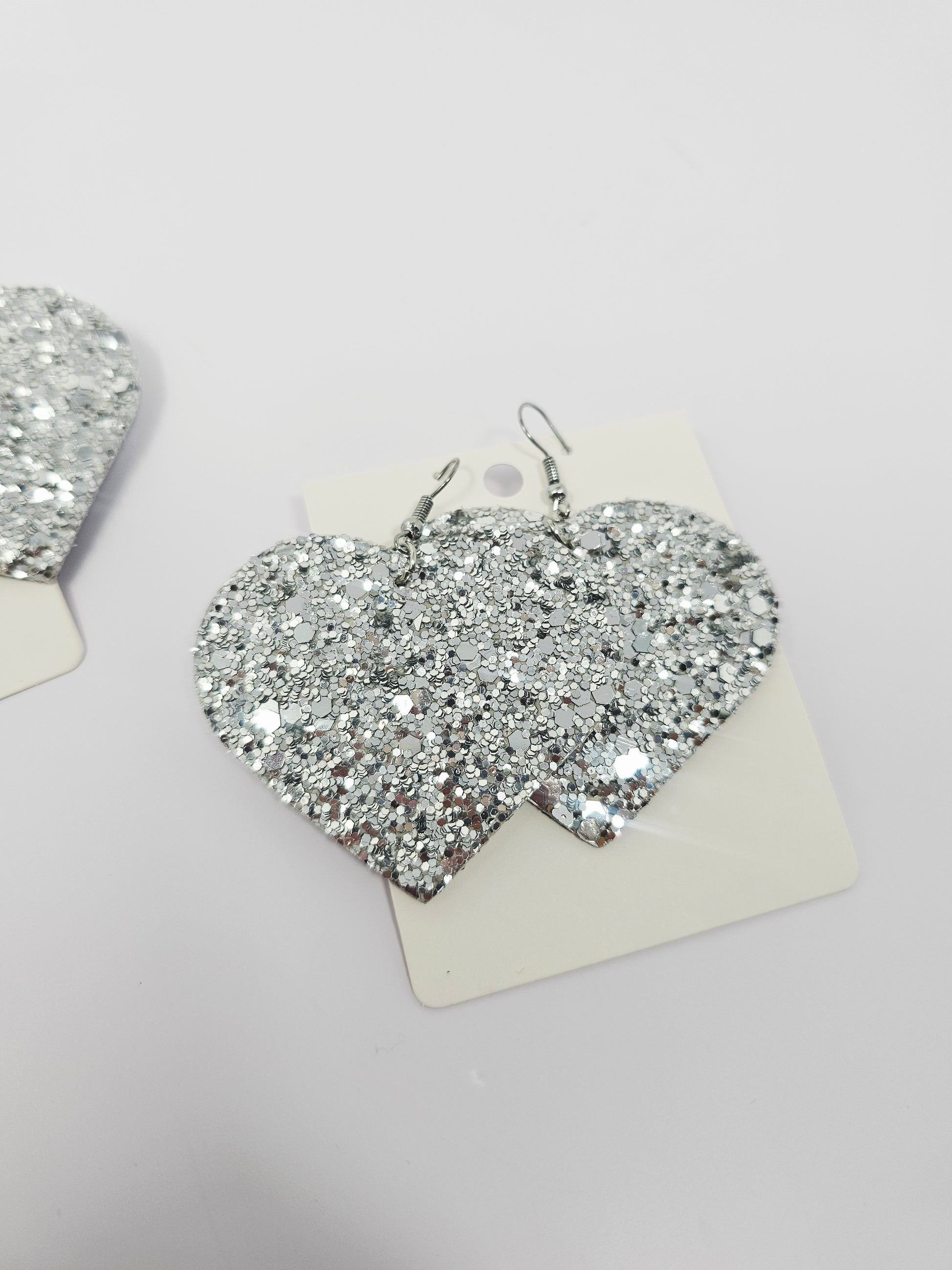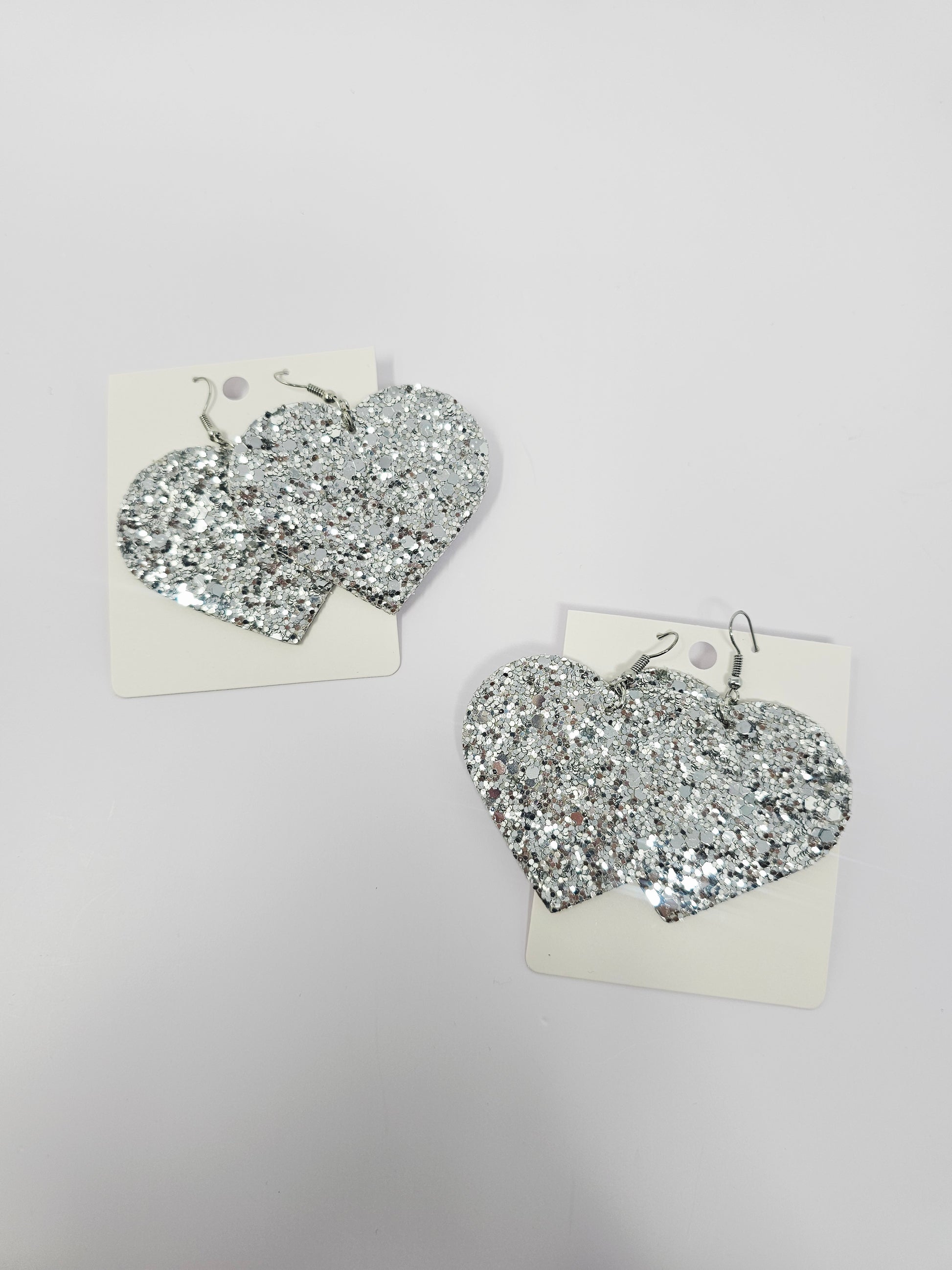 Glittery Hearts Earrings- Silver