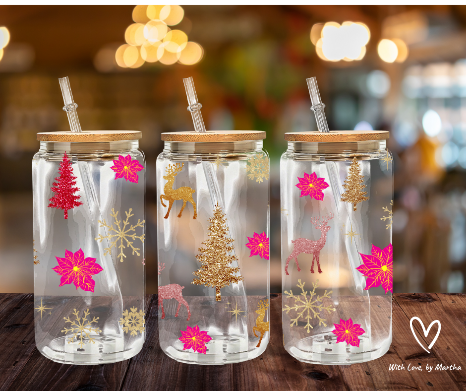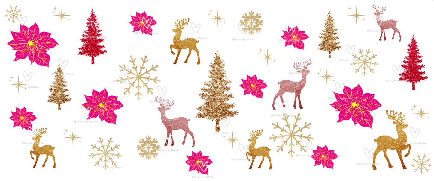 Glittery Pink and Gold Christmas UVDTF wrap Transfer
