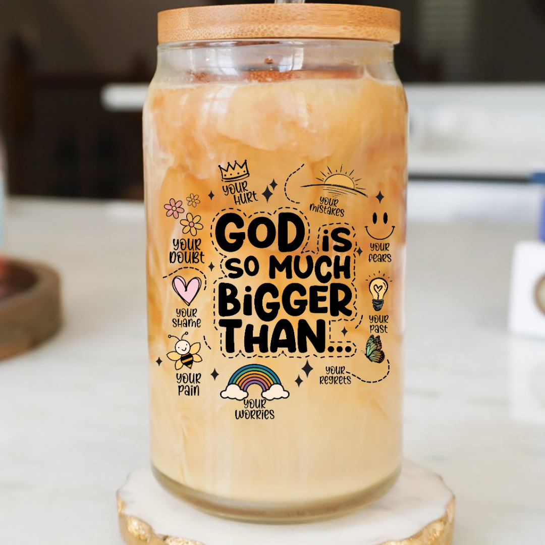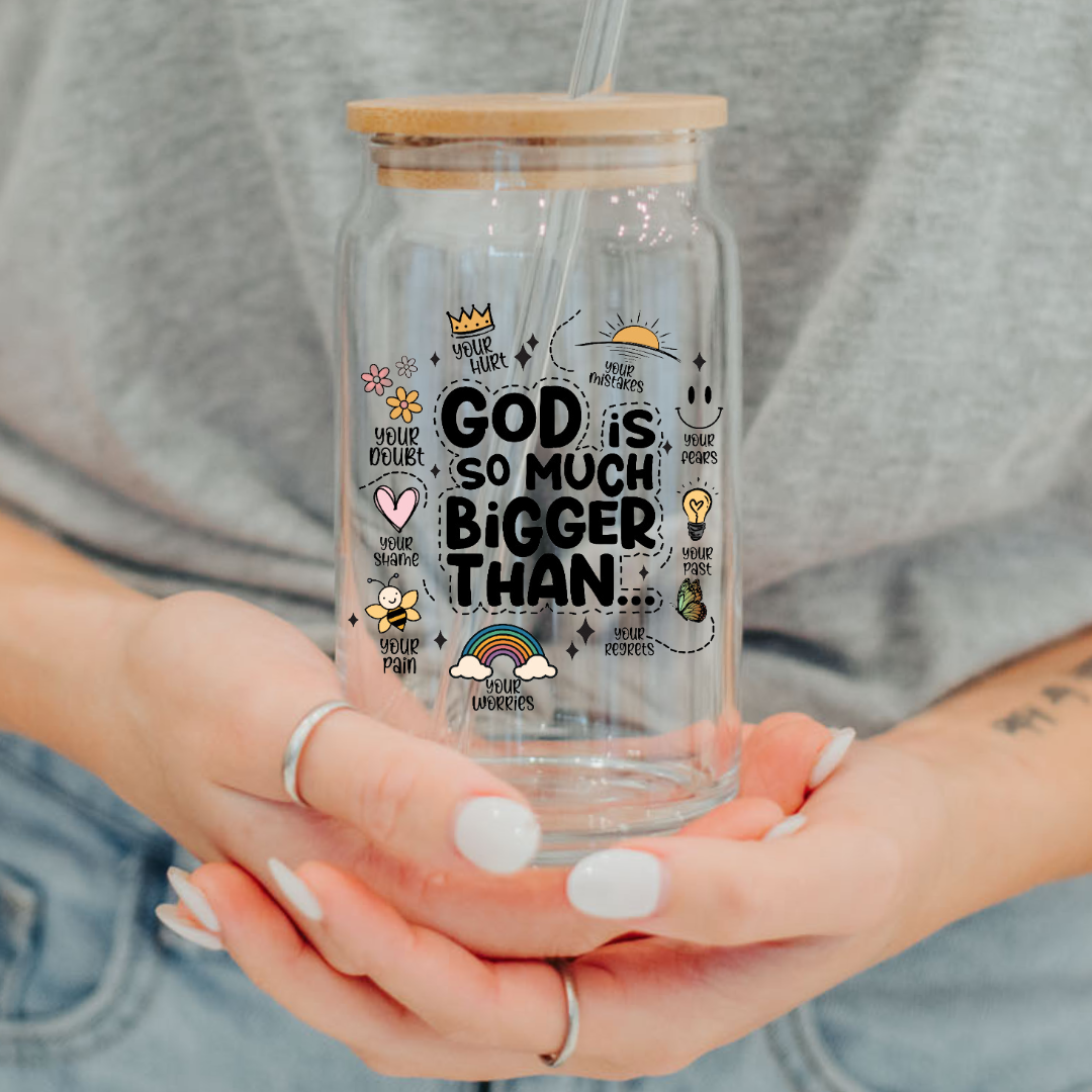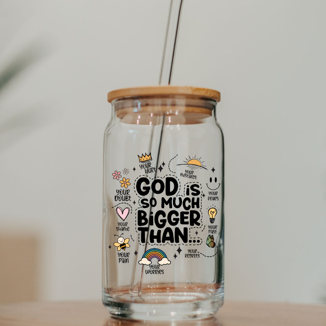 God is so much bigger than... Your doubt, your tears, your past, your pistakes, your hurt, your shame, your pain, Your worries