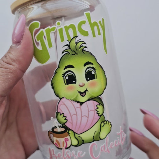 Grinchy Before Cafecito Christmas Glass Cup 16oz
