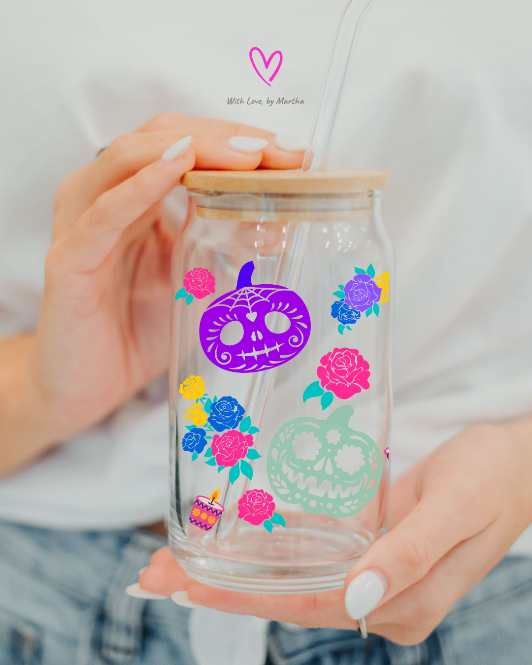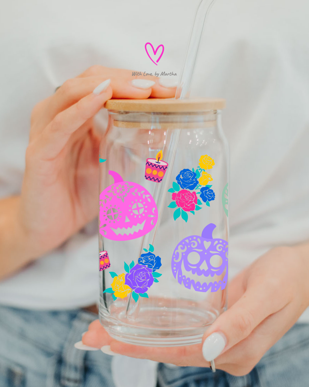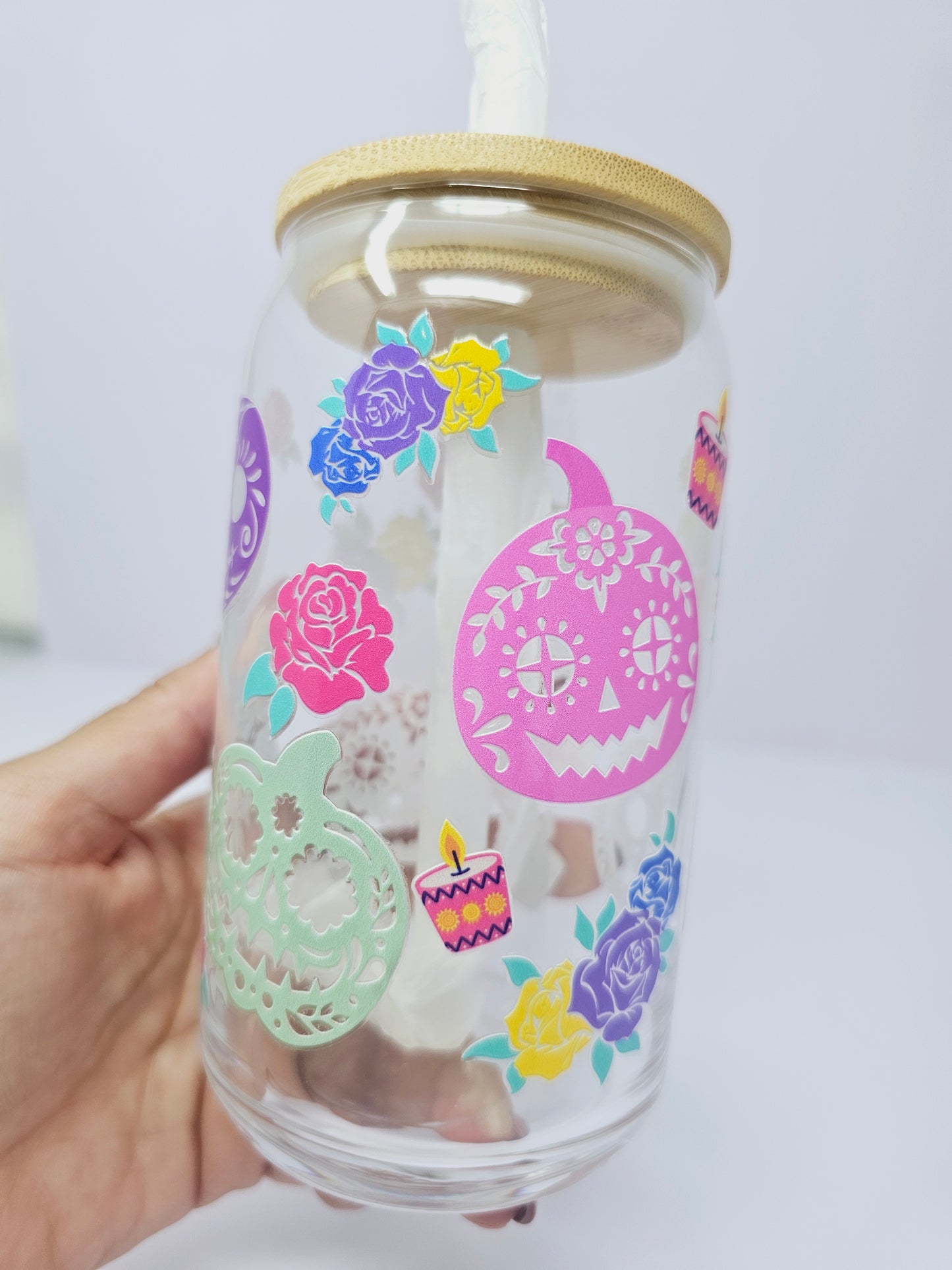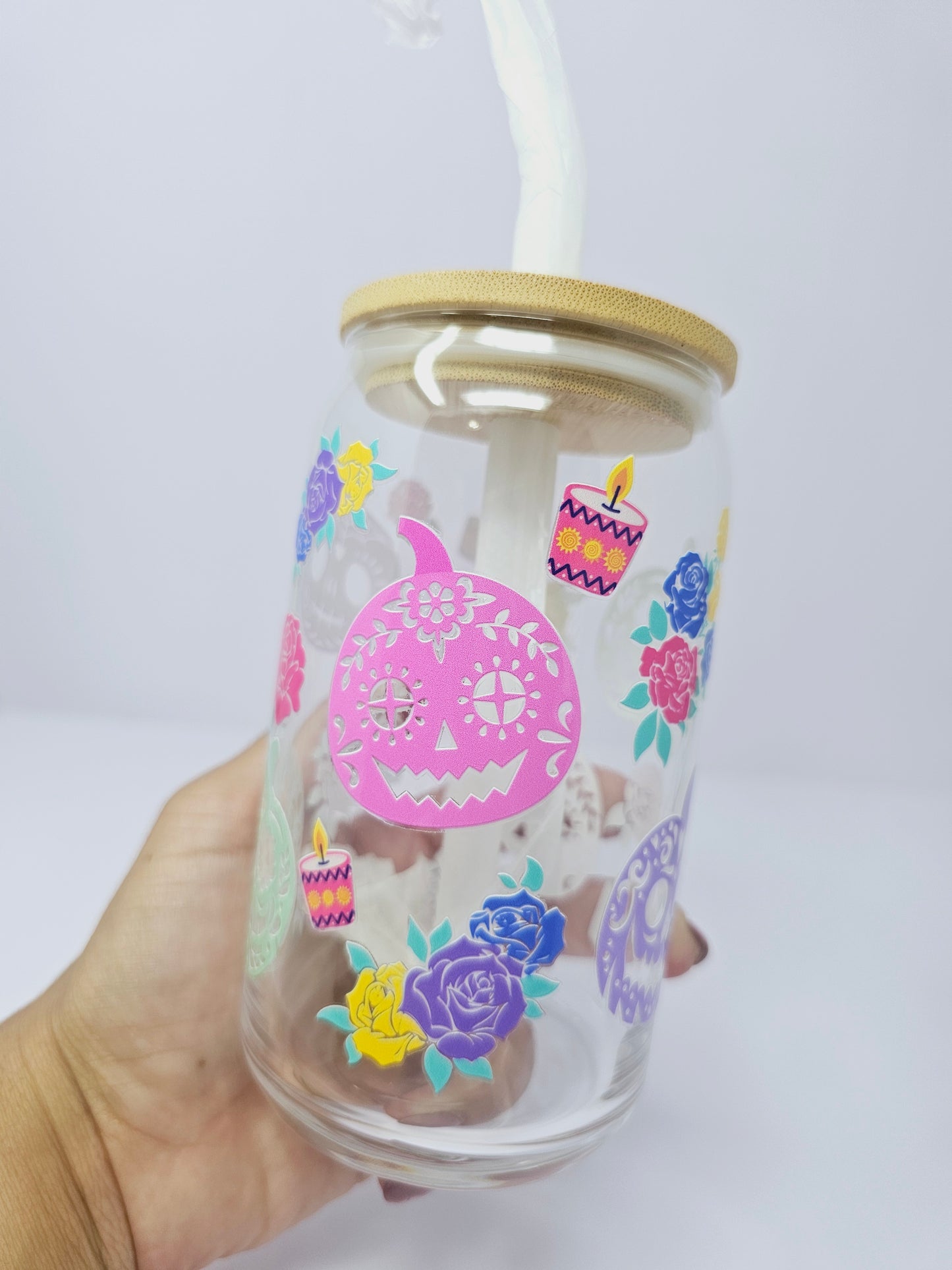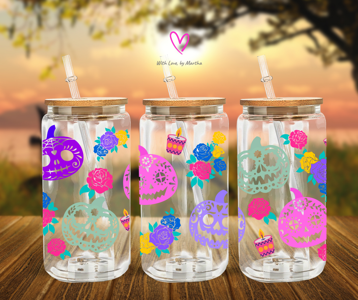 Halloween Dia de los muertos pumpkins Glass Can 16oz