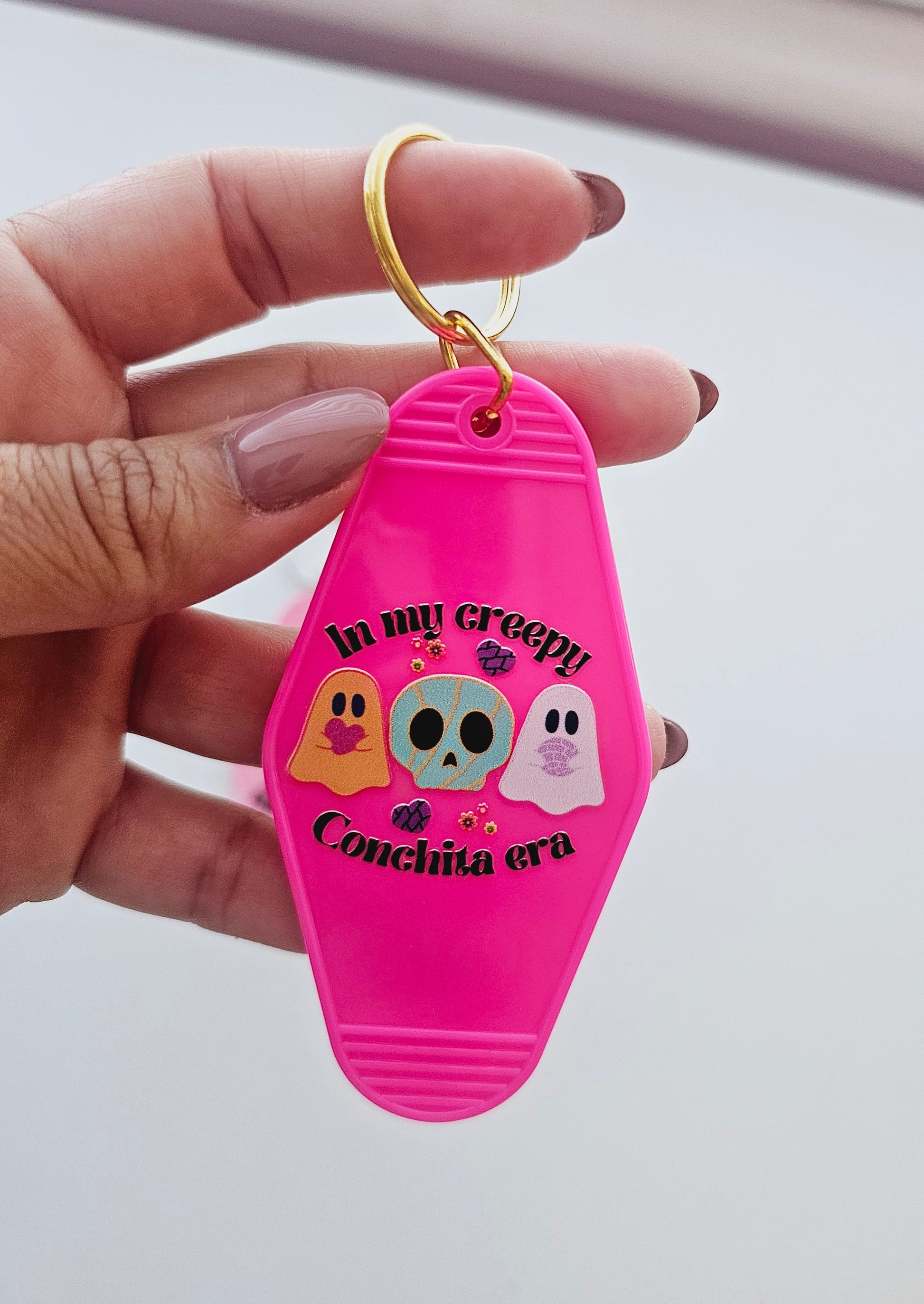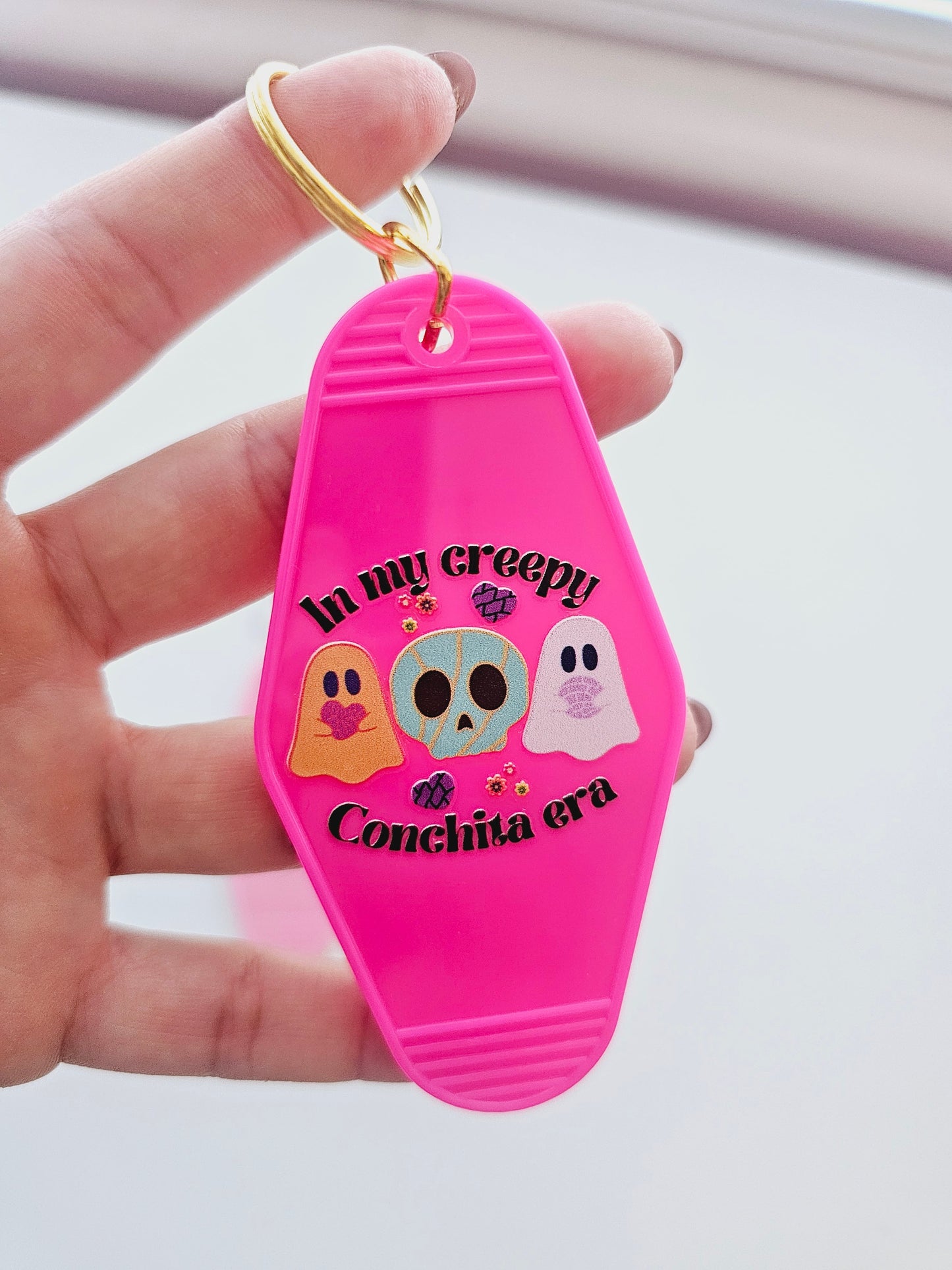 "In my creepy conchita era" Motel style keychains