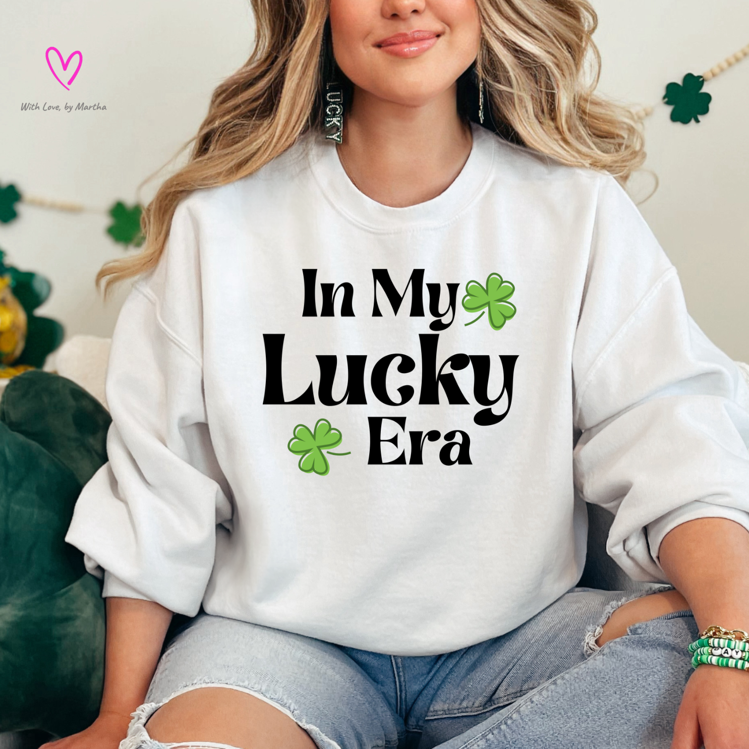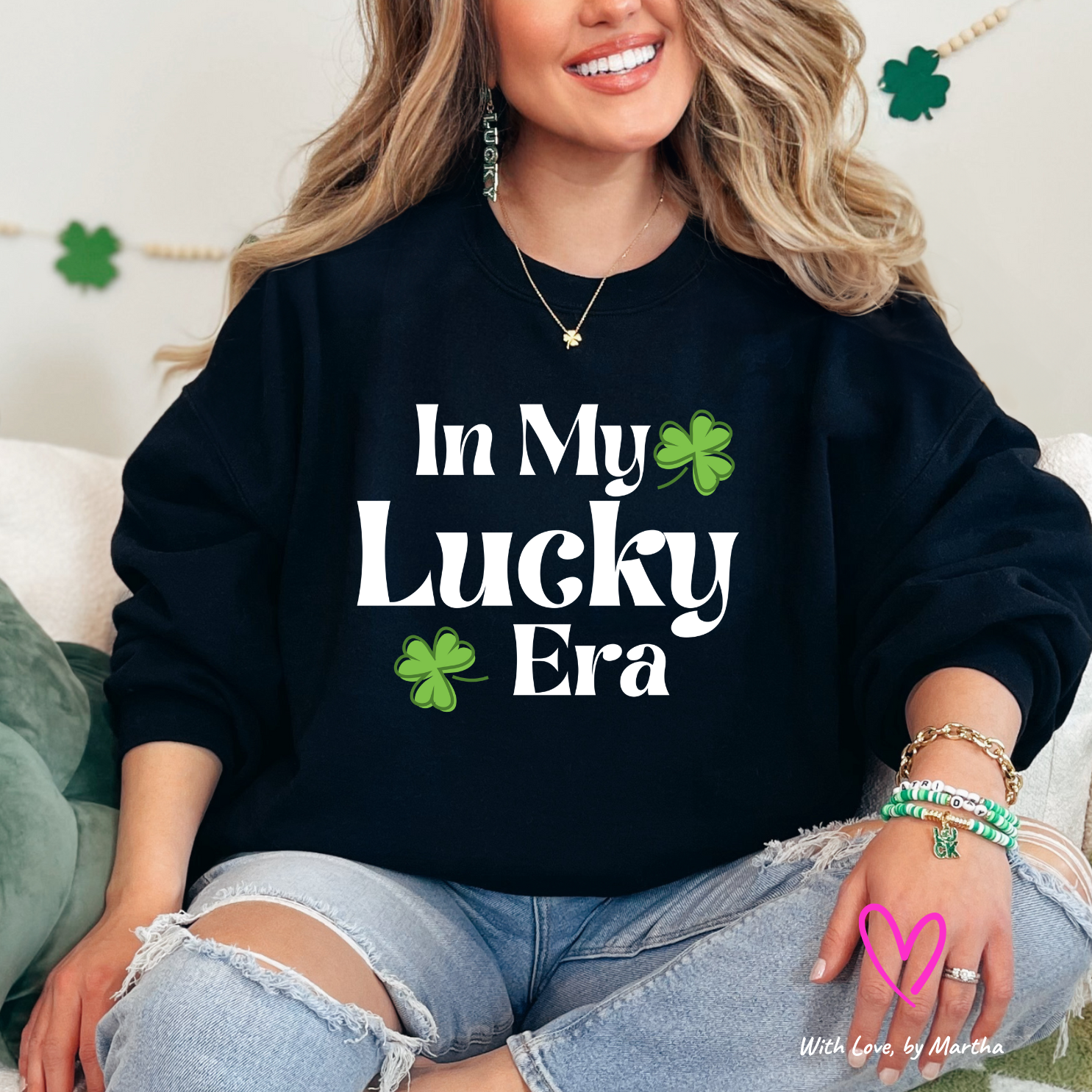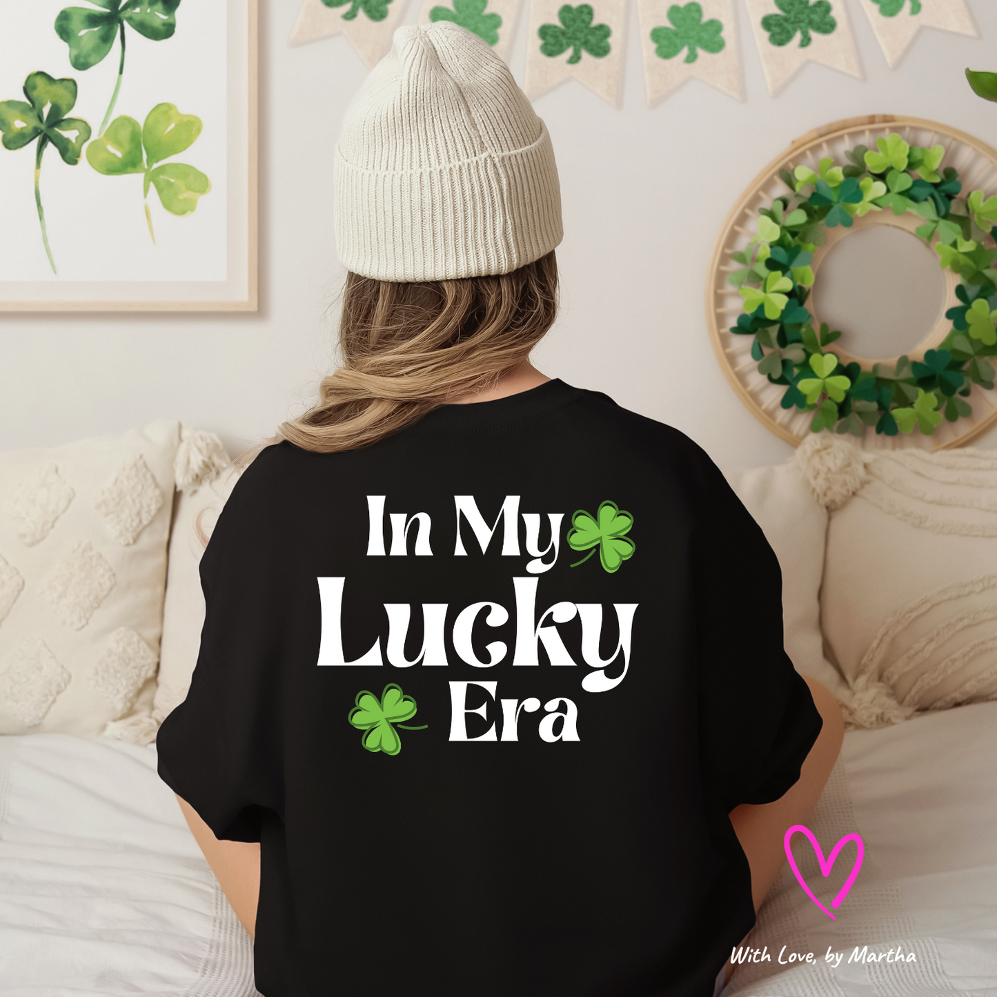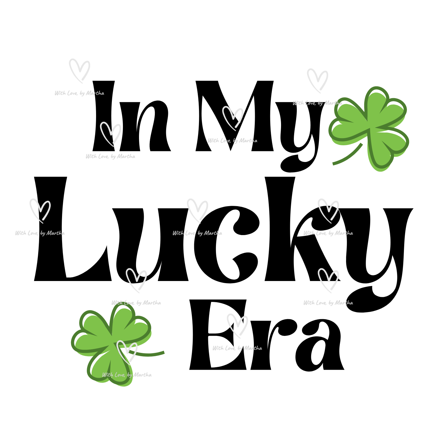 In My Lucky Era. This is a design perfect to print on DTF, iron-on sublimation for shirts, mugs, totes and more. It can also be added to glass or other surfaces with UVDTF. This is a St. Patrick's Day inspired design.