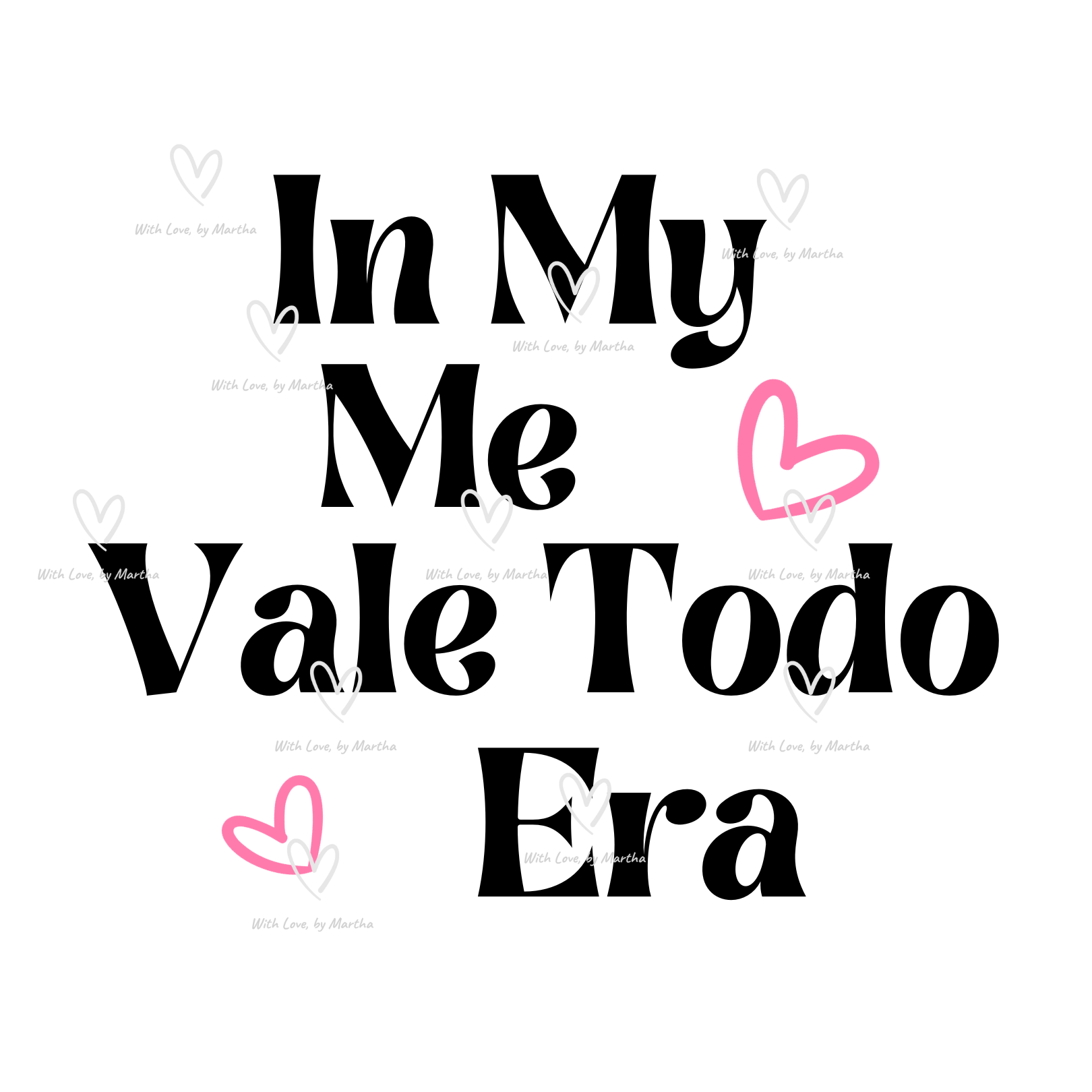 In My Me Vale Todo Era, means "In my I don't give a da** era," in Spanish. This is a design perfect to print on DTF, iron-on sublimation for shirts, mugs, totes and more. It can also be added to glass or other surfaces with UVDTF. This Latina inspired design.