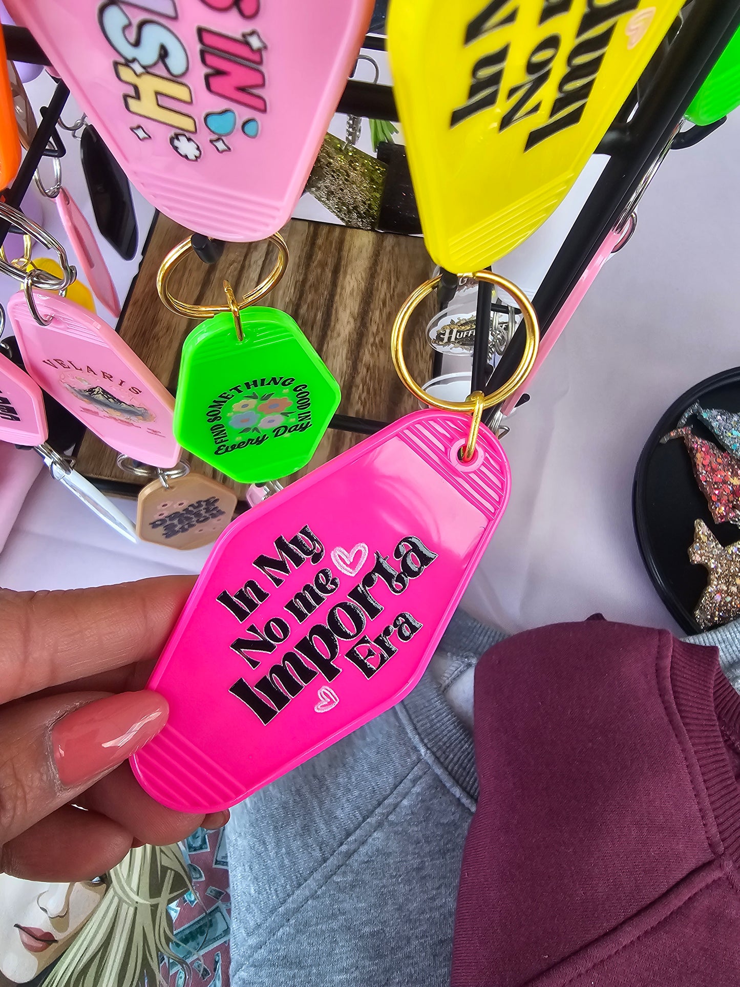 These fun, unique and handcrafted keychains are superlight weight, made of plastic with a durable permanent UV adhesive design. Each hotel keychain measures approx. 3.5 by 2 inches.