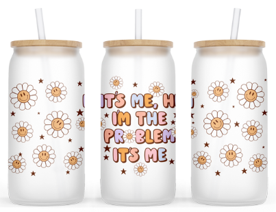 "It's me, hi, I'm the problem it's me" frosted Glass Cup 16oz