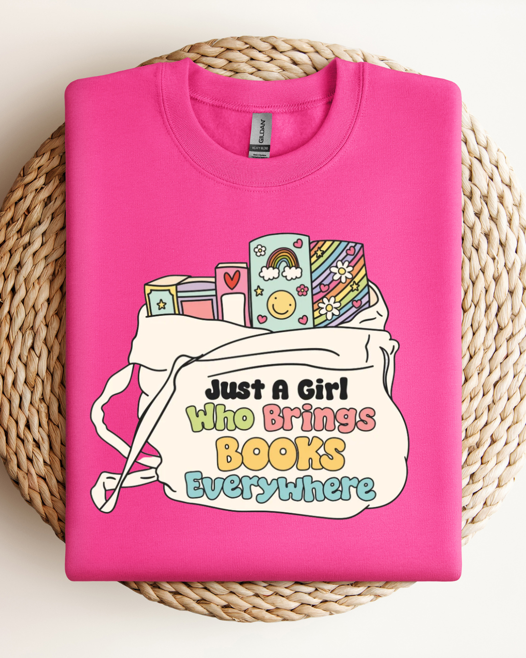 Just a girl who brings books everywhere T-shirt/Sweatshirt is not just a stylish piece of clothing, it's a statement. Made with high-quality material and designed to provide comfort and warmth, this sweatshirt is perfect for work or play. Show off your confidence and determination with the Just a girl who brings books everywhere T-shirt/Sweatshirt