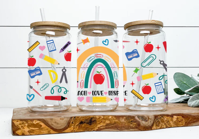 "Teach, Love, Inspire" Techer Glass Cup 16oz