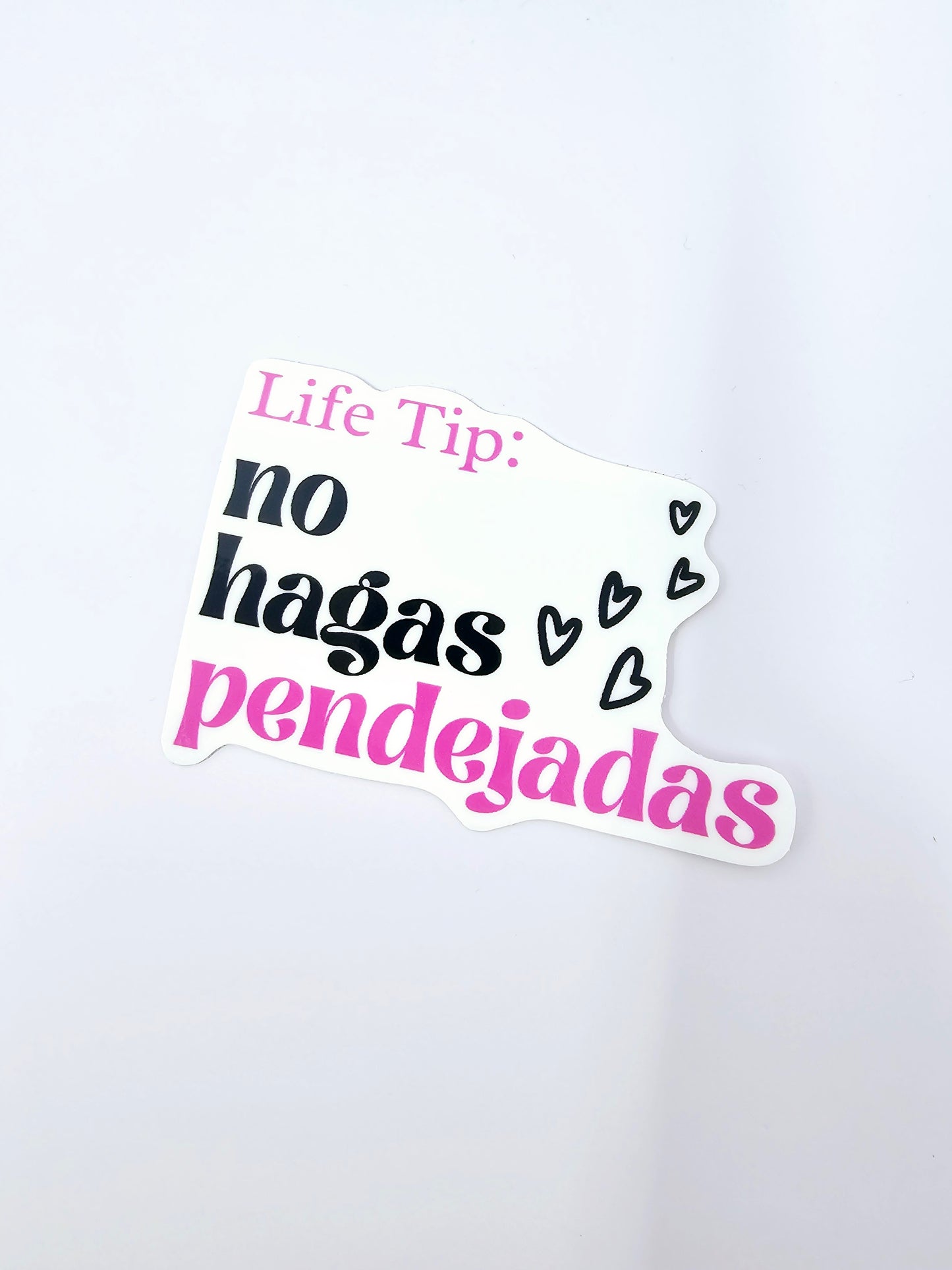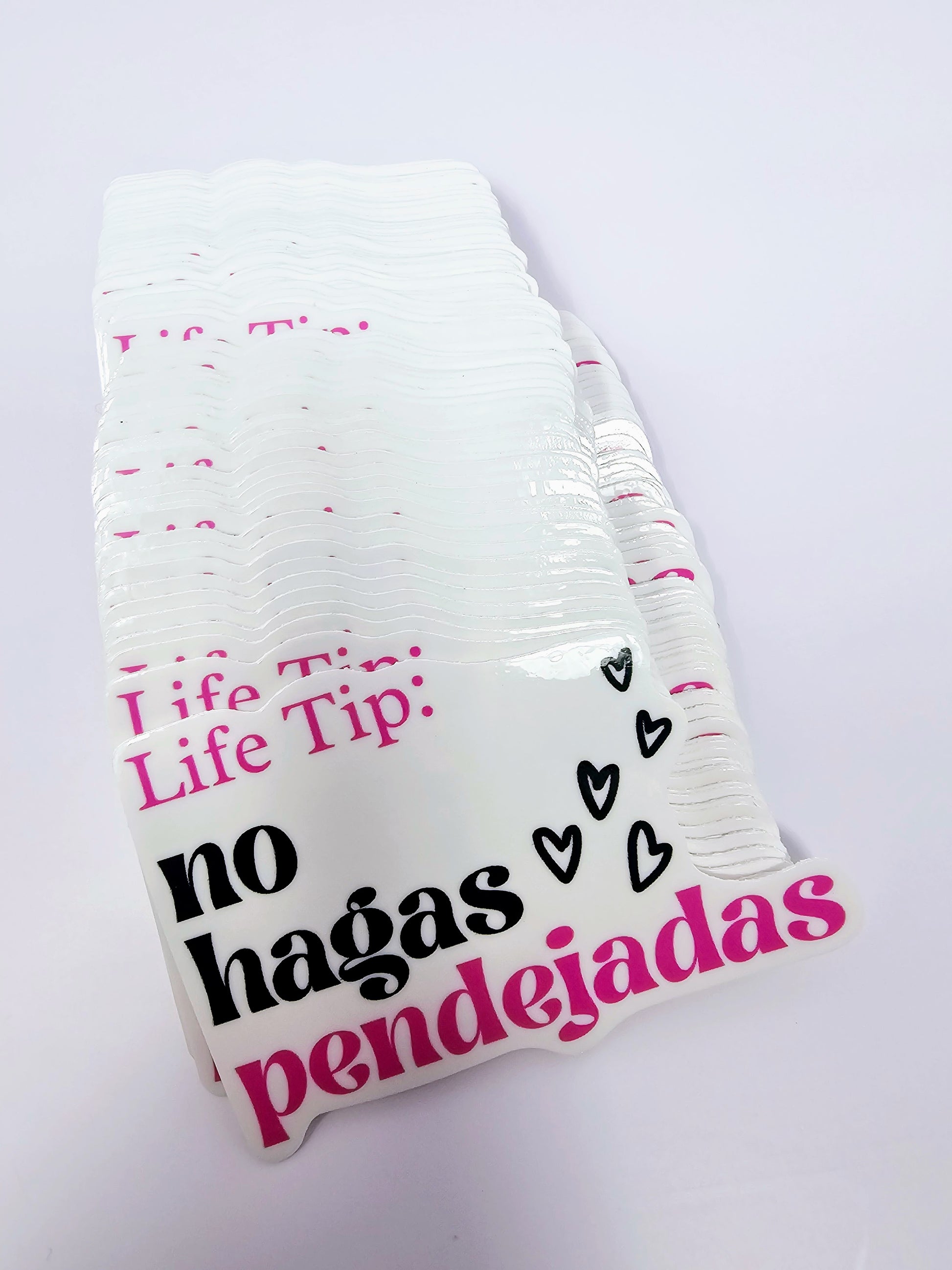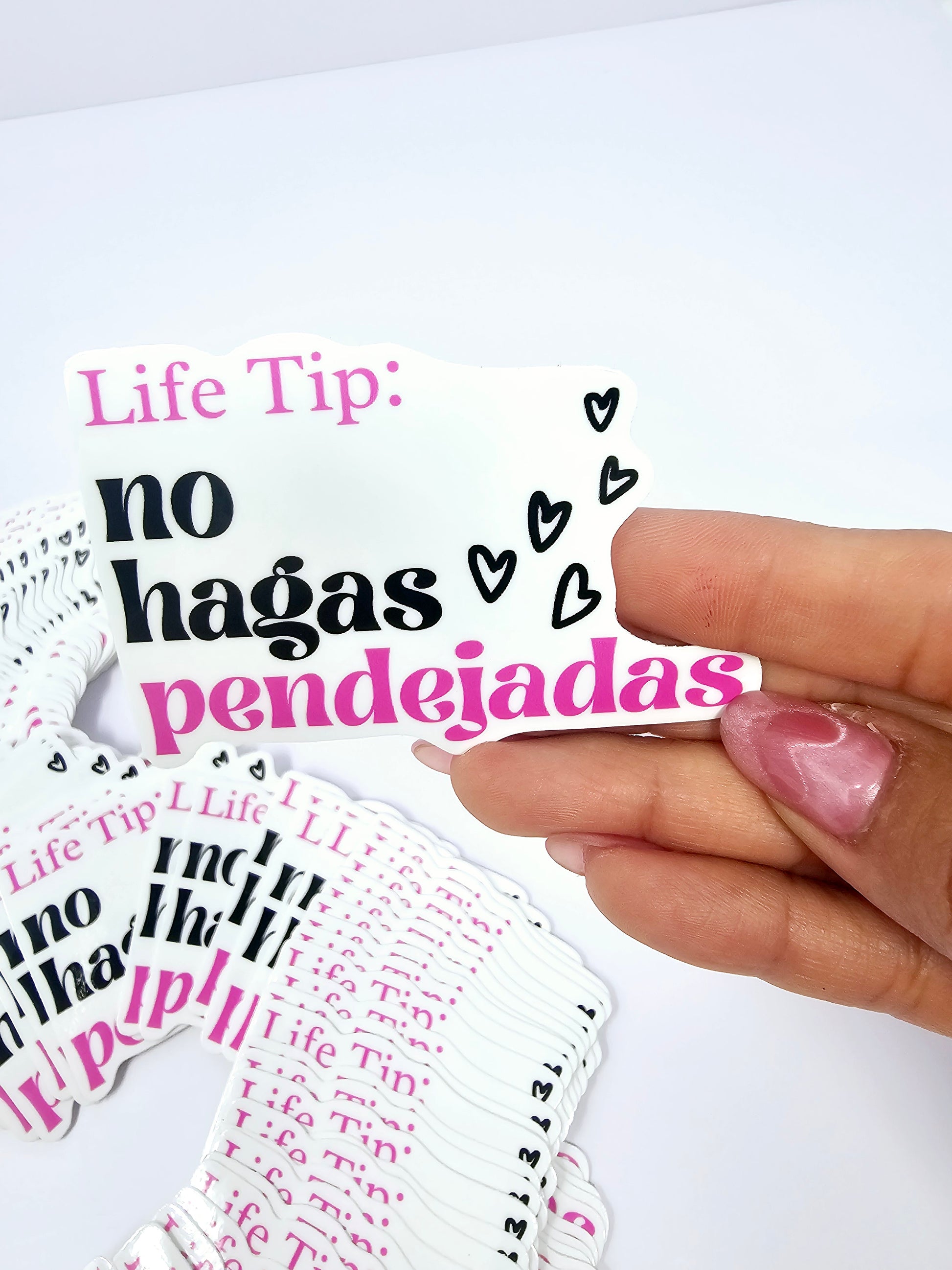 This is a vinyl sticker that reads "Life Tip: No hagas pendejadas Sticker""
