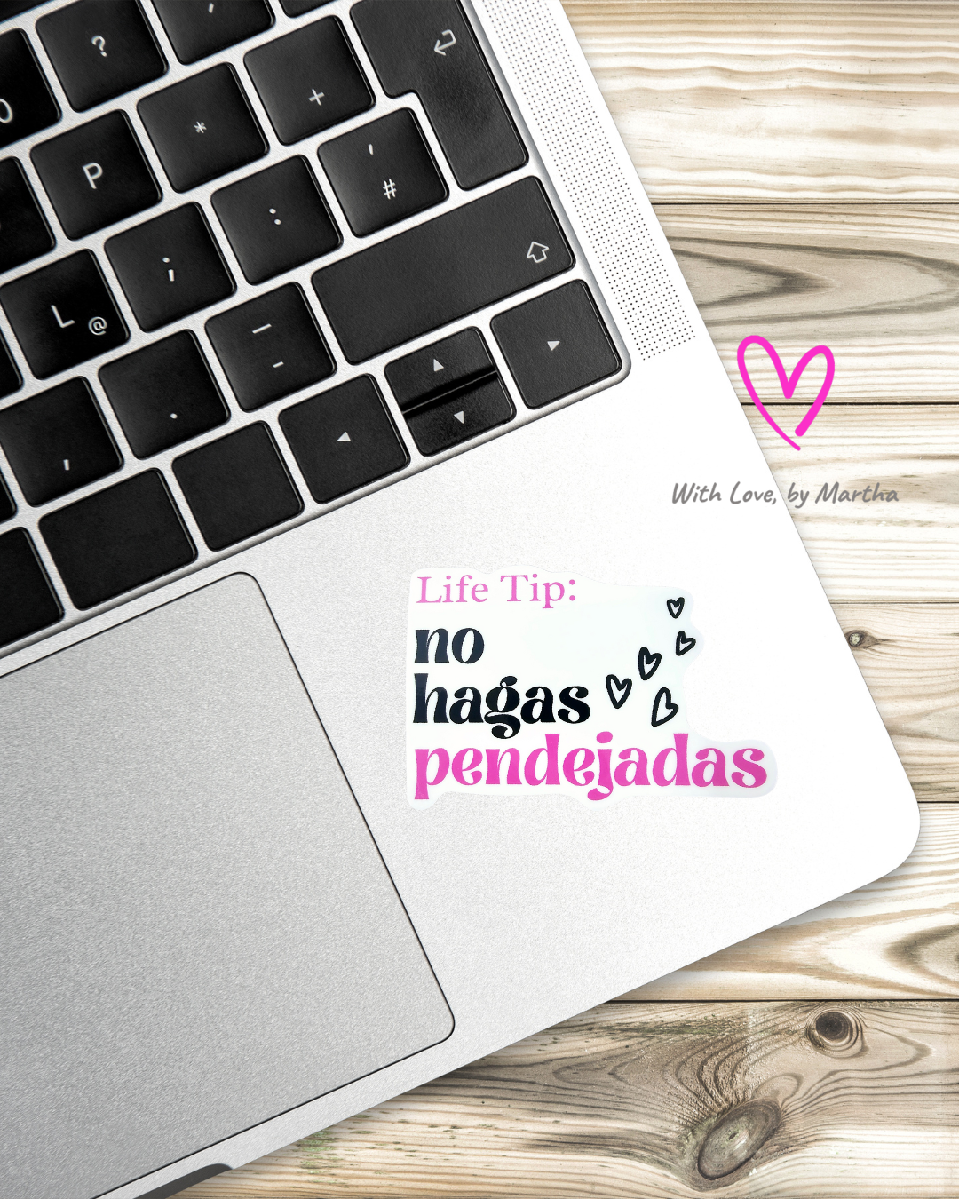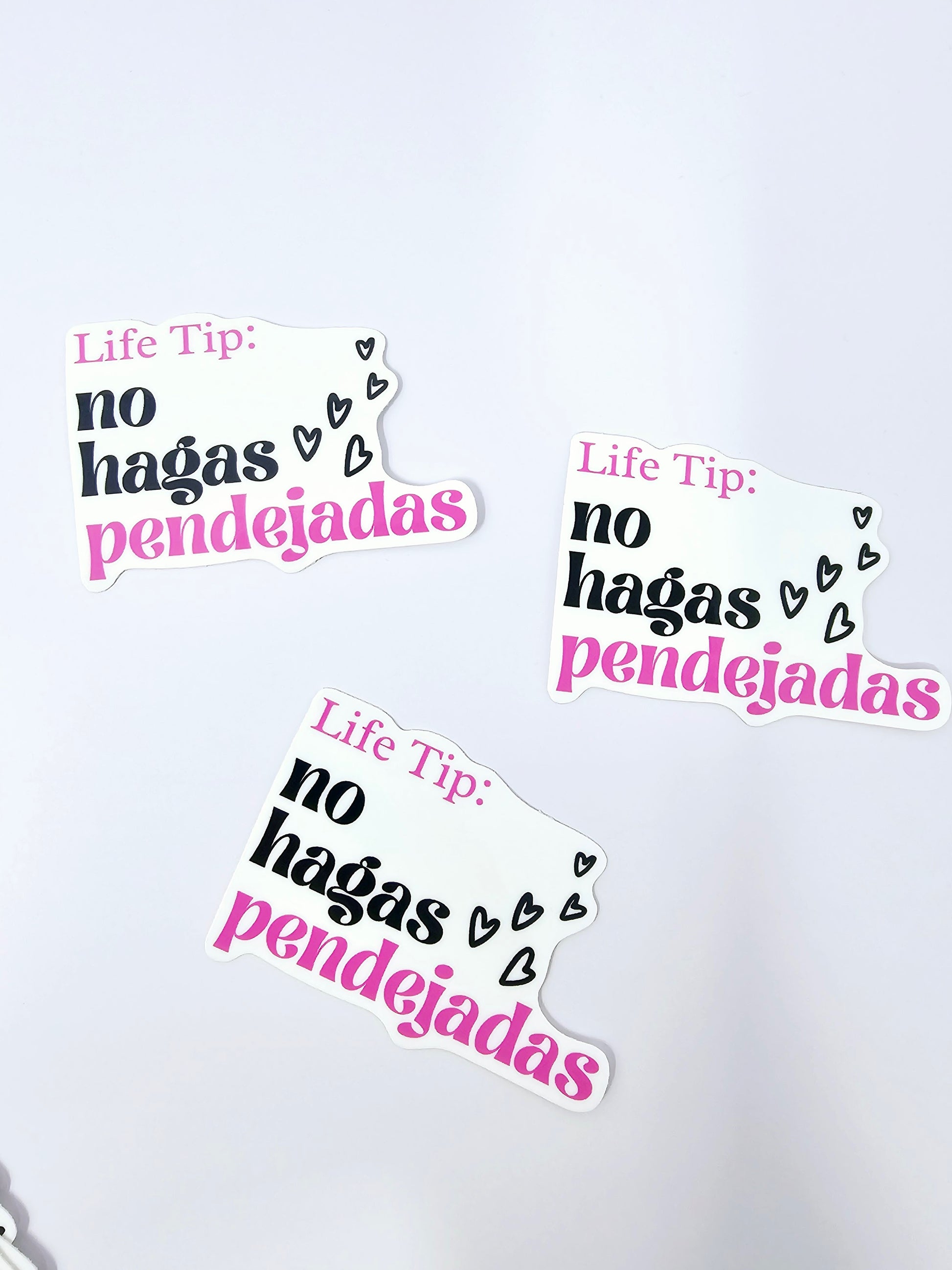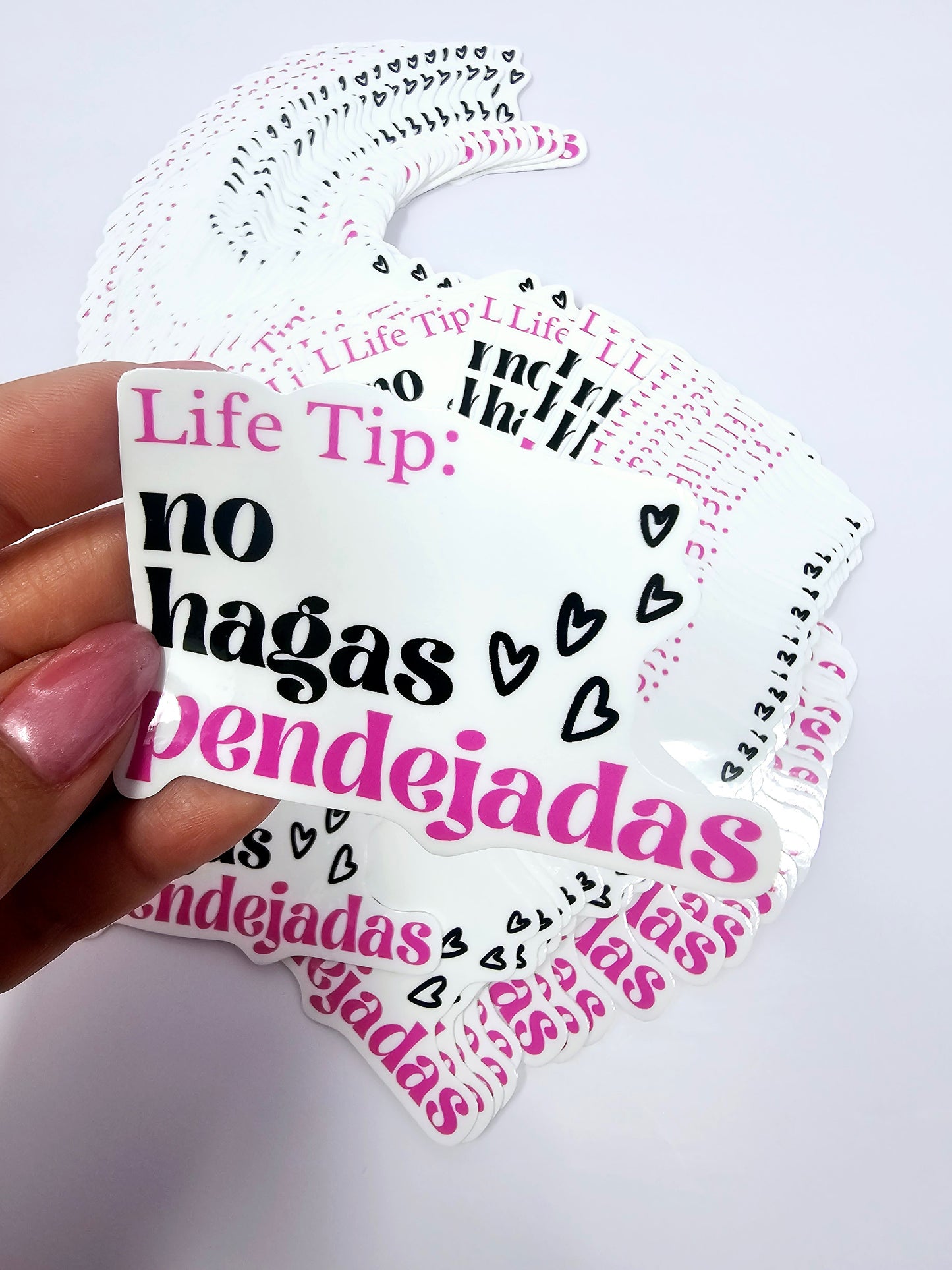 This is a vinyl sticker that reads "Life Tip: No hagas pendejadas Sticker""
