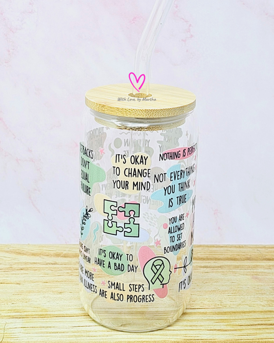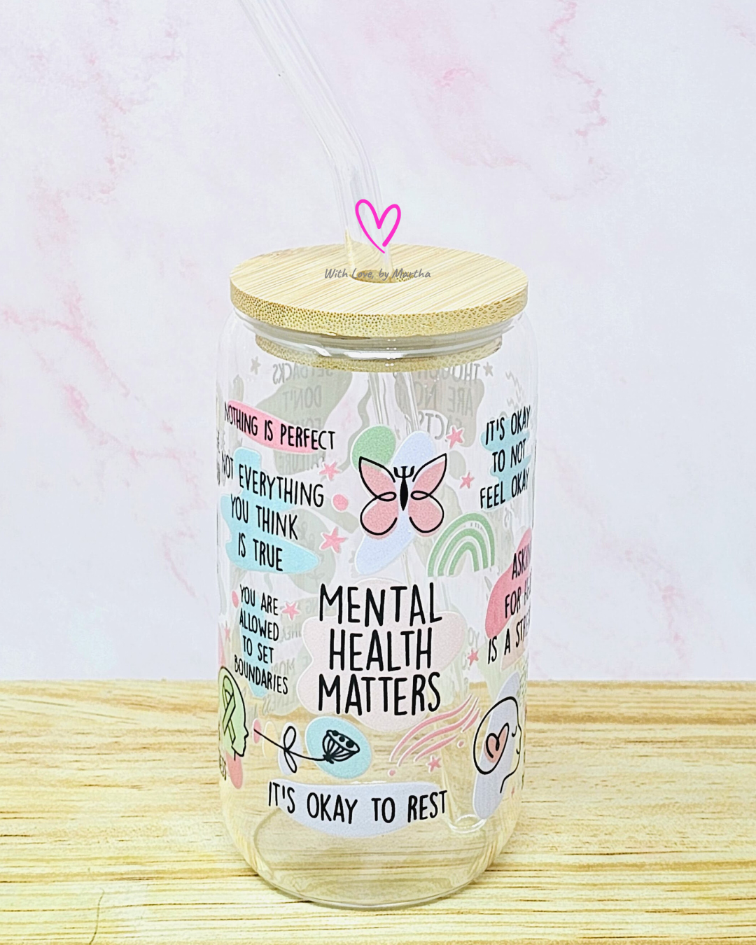 "Mental Health Matters" Glass Cup 16oz