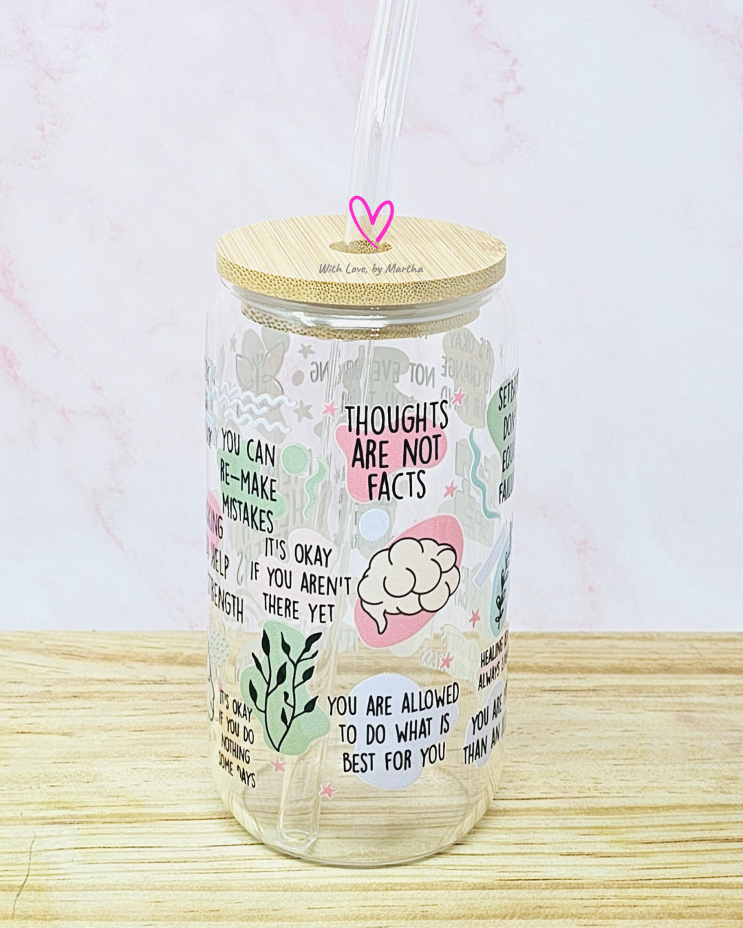 These glass cups are more than just for a drink! They come with a glass straw and a bamboo lid.