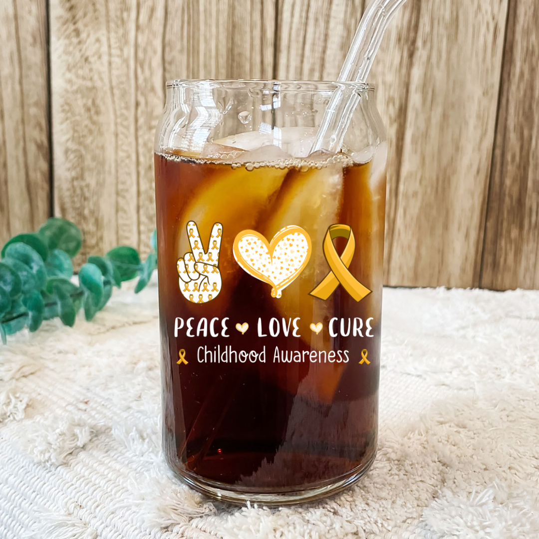 Peace Love Cure Childhood Cancer Awareness Glass Cup