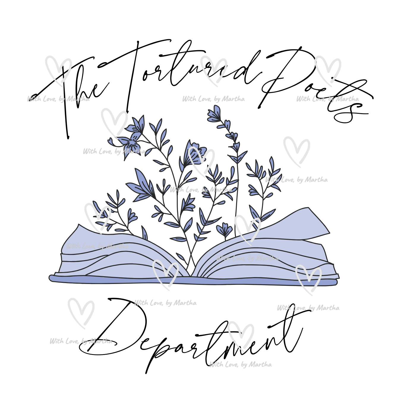 The Tortured Poets. This is a design perfect to print on DTF, iron-on sublimation for shirts, mugs, totes and more. It can also be added to glass or other surfaces with UVDTF. This a perfect gift for a Swiftie fan.